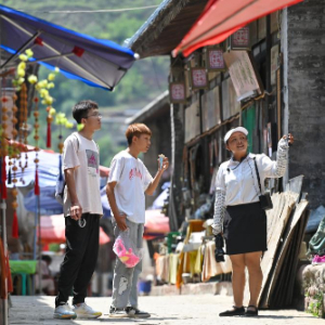 身着羊皮坎肩,一根铜旱烟挽在腰间……留着花白山羊胡的李世喜曾是码头上的一名船工,如今,借着旅游业发展的东风,年过七旬的他做导游、开民宿、当模特、拍影视,成为当地的“红人”。