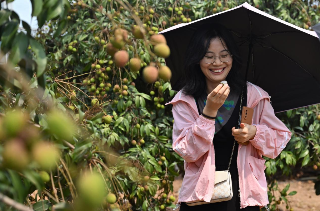 海南省乐东黎族自治县万冲镇的“桂花香”荔枝进入收获季,吸引许多游客前来采摘、品尝。新华社记者 郭程 摄