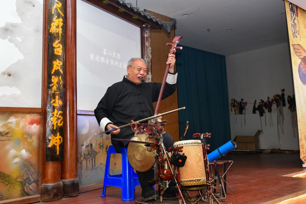 这是泰山皮影戏代表性传承人范正安在表演。新华社记者朱峥 摄
