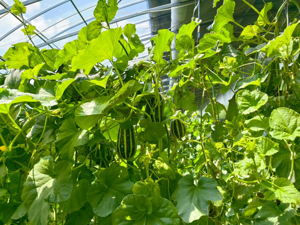 这是长春市九台区马鞍山村智能大棚内生长的“博洋九号”甜瓜(7月15日摄)。新华社记者 张博宇 摄