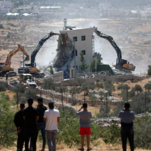 7月14日,在约旦河西岸的伯利恒地区,以方人员驾驶工程车辆拆除巴勒斯坦人的房屋。 新华社发(马蒙·沃兹沃兹摄)