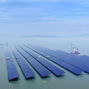 青岛市即墨区鳌山湾海域的海上光伏项目区(7月3日摄,无人机照片)。新华社记者李紫恒摄