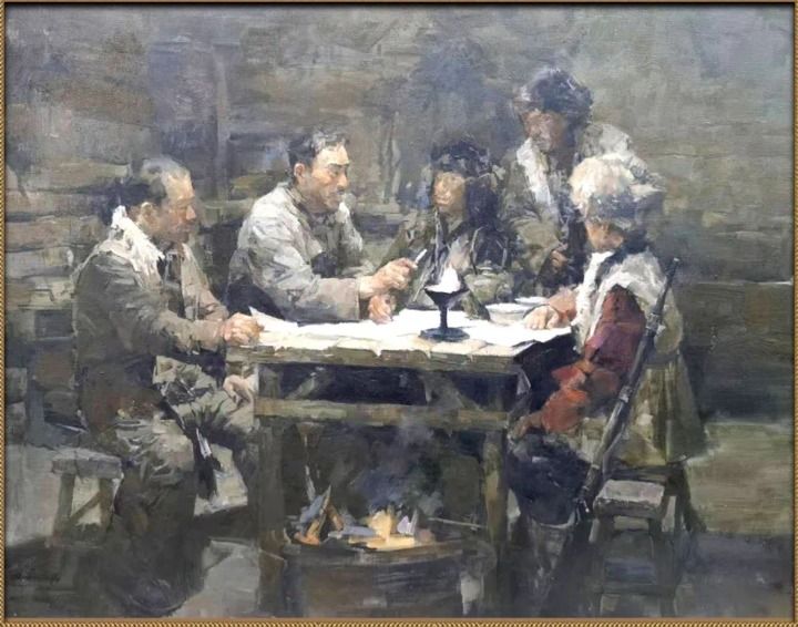 杨靖宇提出“灯芯理论”的油画。磐石市抗日斗争纪念馆供图