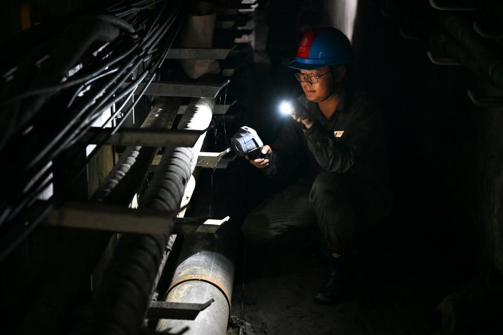 “55摄氏度,正常范围。”在首个电缆接头处,张启瀛的红外测温仪给出诊断,罗旭则在一旁快速记录数据。管廊内,七条碗口粗的电缆源源不断地向当地企业输送电能。管廊高度仅为1.6米,巡检人员不得不弯下腰,保持“半站立姿态”工作、行走。