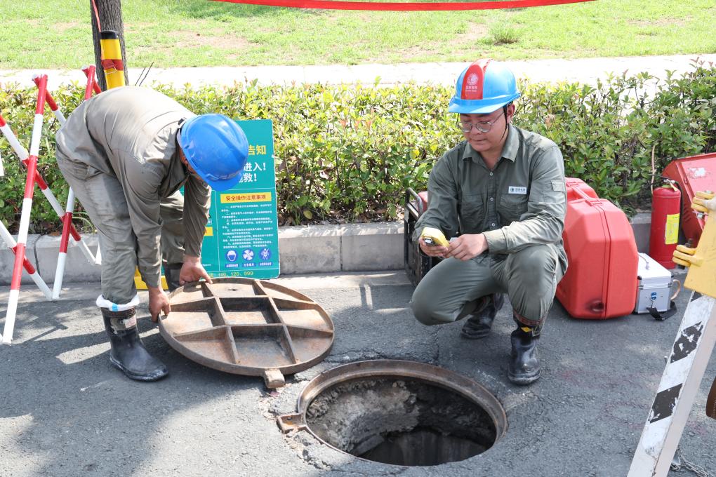 一个直径仅80厘米的井口,连接着城市的“生命线”。掀开井盖的瞬间,热浪扑面而来。经过30分钟通风,气体检测仪亮起绿灯:“含氧量20.6%,安全!”在负责人李冬指令下,张启瀛与罗旭沿着垂直铁梯“潜”入5米深的地下管廊。