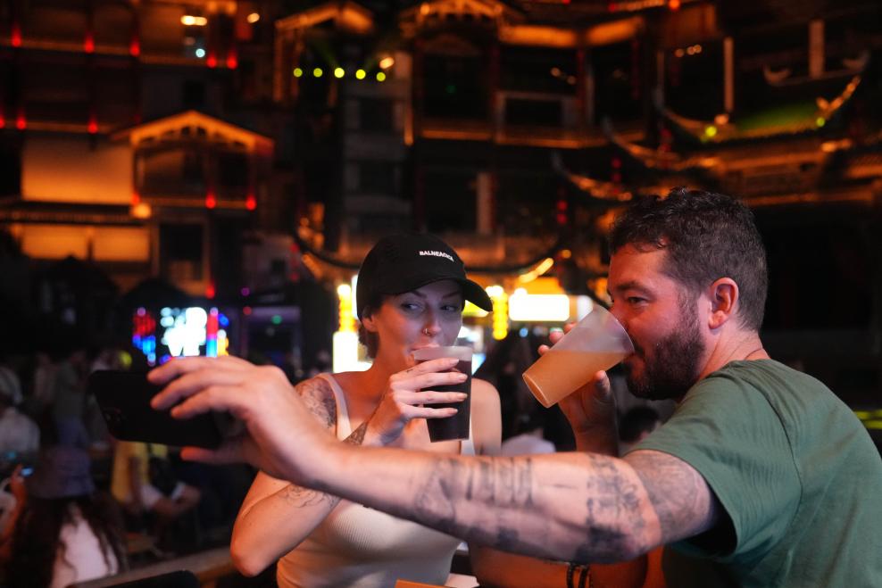 5月20日,澳大利亚游客在张家界市七十二奇楼景区合影。随着一系列入境便利政策措施的实施,越来越多外国游客来到湖南张家界探寻山水人文之美。新华社记者 薛宇舸 摄