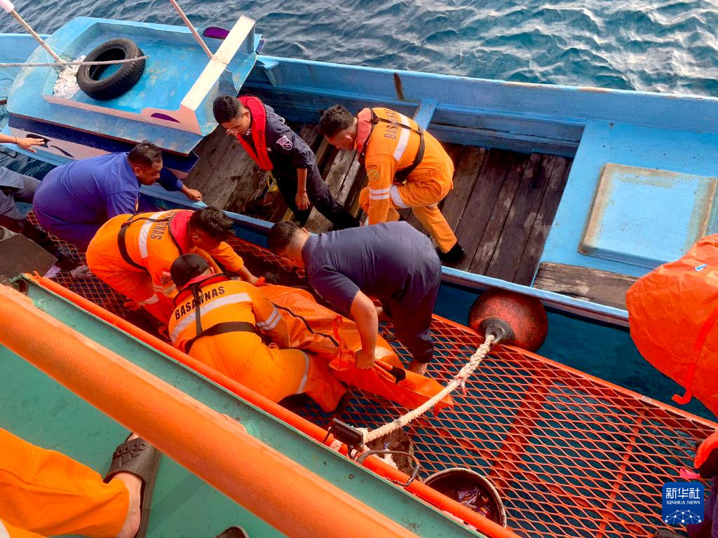 7月20日,救援队在印度尼西亚北苏拉威西省海域运送起火船只上的遇难者遗体。新华社发(印尼国家搜救局供图)