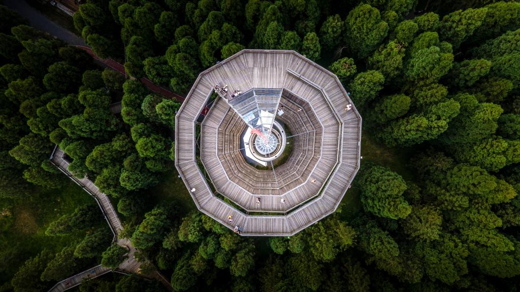 距离双河镇半小时车程的“树顶漫步”自然教育营地,栈道蜿蜒而上。游客们踏着木阶,走上距离地面数十米的平台,仿佛置身树梢之上,眼前的森林、山脉和草原景色一览无余。
