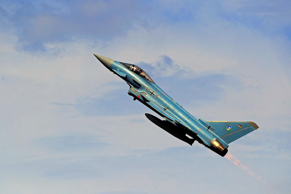 2024年8月31日,德国空军“台风”战斗机在布加勒斯特国际航展上进行飞行表演。新华社发(克里斯泰尔摄)