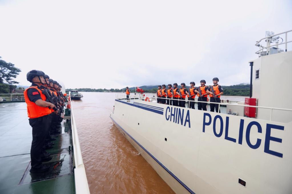 7月23日,联合巡逻执法编队抵达老挝孟莫水域。(云南省公安厅水上巡逻总队供图)