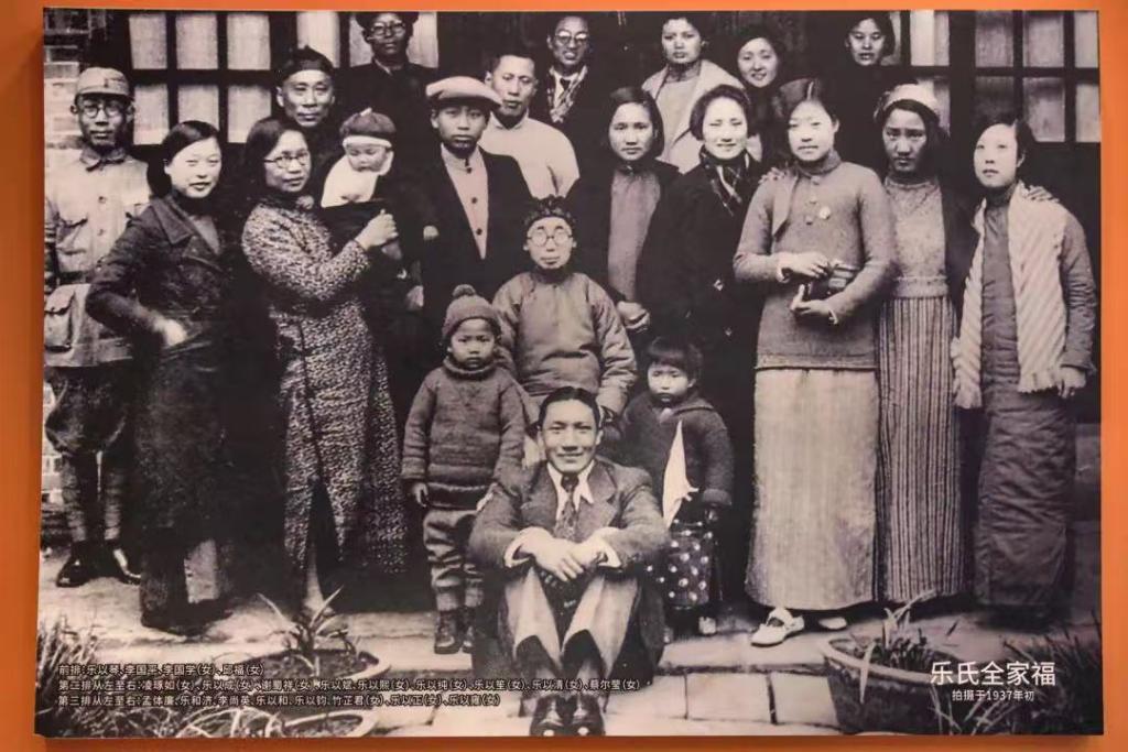 如今,在乐以琴故居旁边,新开放了乐以琴生平事迹暨乐氏家风展,展览以一张全家福为结尾。讲解员宋越悦介绍,1937年初,乐以琴回家过年拍下了这张照片。照片上,乐以琴抱着双膝,笑着坐在最前面。这是他和家人最后一张合照。