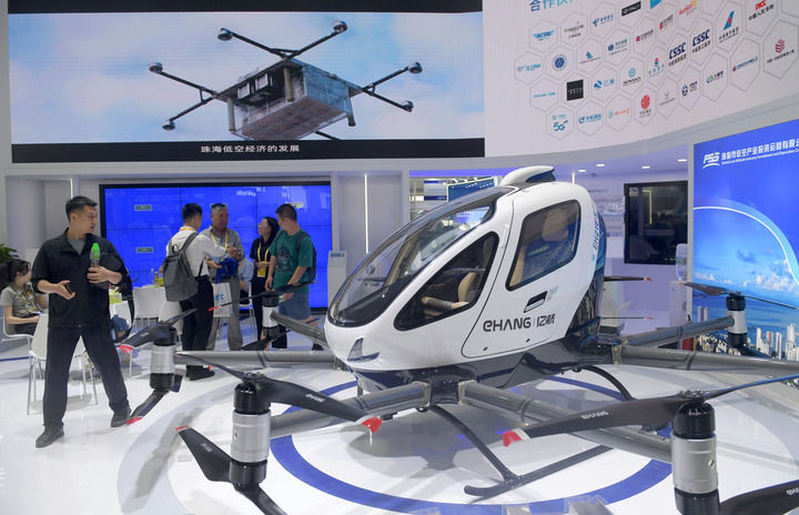 这是在珠海航展上展示的亿航智能EH216-S无人驾驶载人航空器(2024年11月13日摄)。新华社记者 卢汉欣 摄