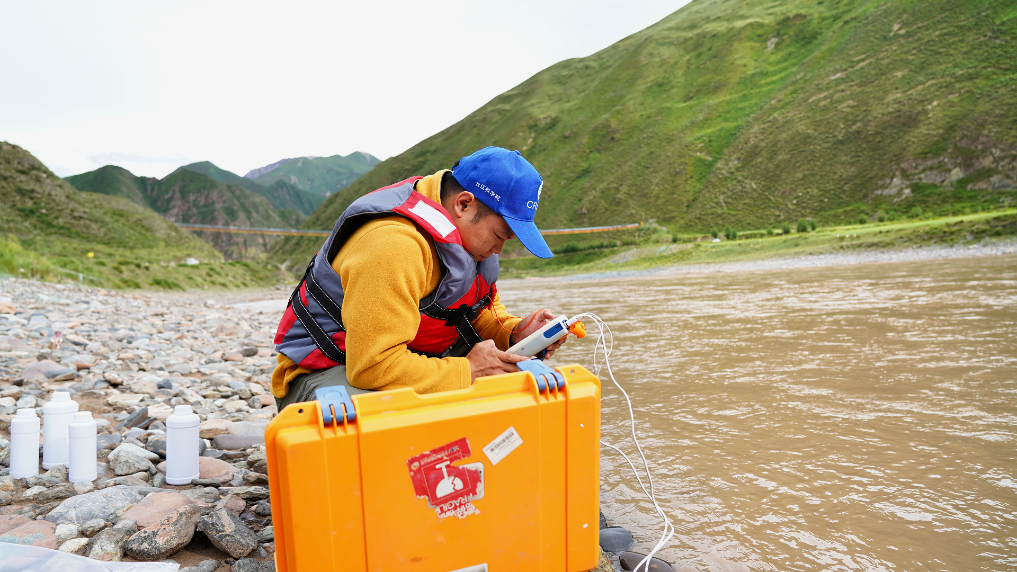 27日下午,科考队员在直门达河段用便携式多参数测试仪现场测定河水水质、电导率等参数,并取水样和泥沙样本装入特定容器。科考行程结束后,样本将被送回实验室进行详细的理化分析。