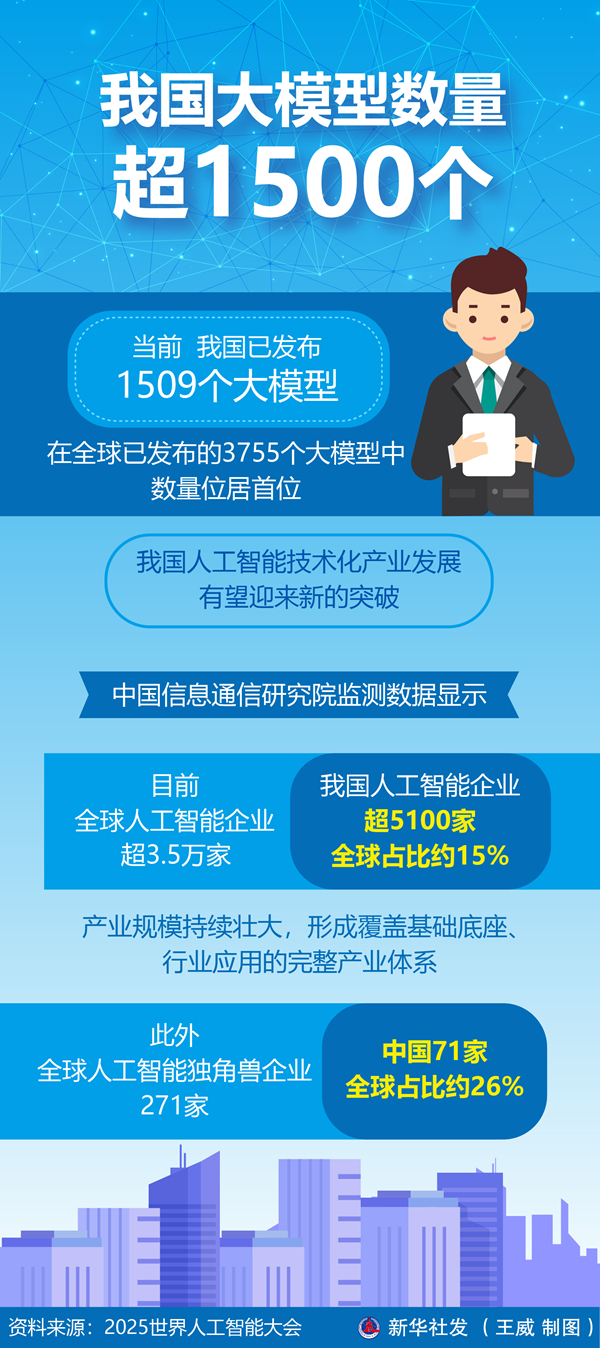新华社上海7月27日电(记者龚雯、宋晨)当前,我国已发布1509个大模型,在全球已发布的3755个大模型中数量位居首位,我国人工智能技术化产业发展有望迎来新的突破。