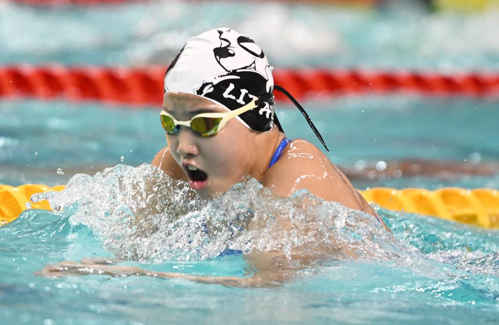 ↑5月21日,于子迪在2025年全国游泳冠军赛女子200米蝶泳决赛中。新华社记者 夏一方 摄