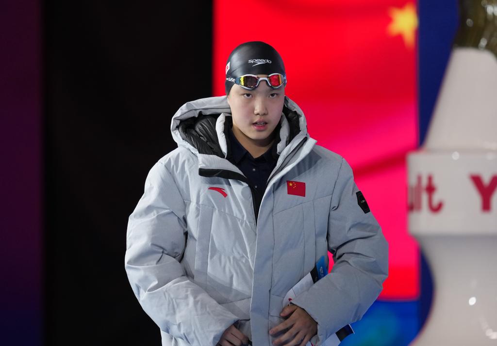 ↑7月27日,中国选手于子迪在世界游泳锦标赛游泳女子200米混合泳半决赛前。新华社记者 伍志尊 摄