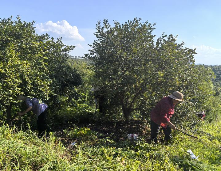 村民在河南省光山县槐店乡司马光油茶园内劳作(2025年7月2日摄)。新华社记者 刘金辉 摄