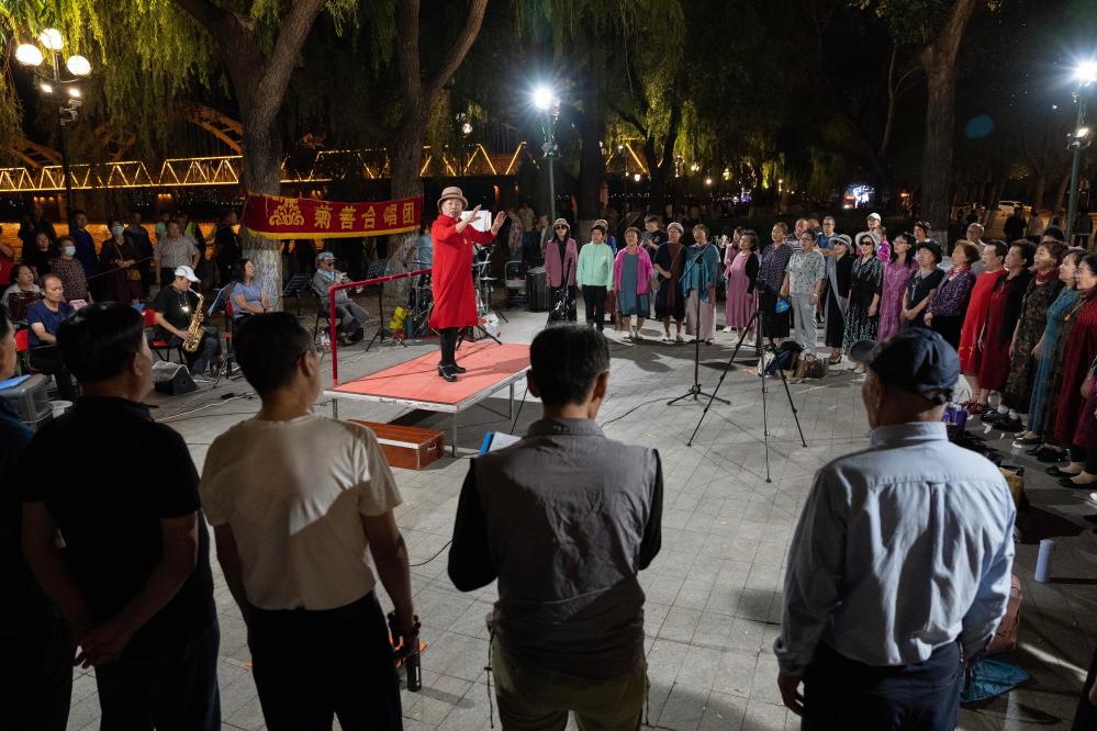 在松花江畔的斯大林公园,音乐爱好者在演唱。 新华社记者 谢剑飞 摄