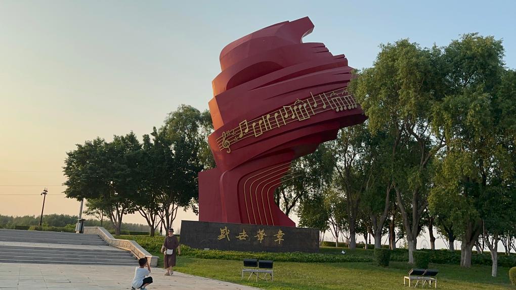 游客在音乐雕塑前合影。新华社记者 戴锦镕 摄
