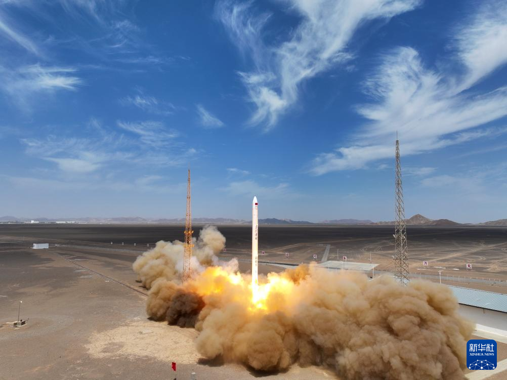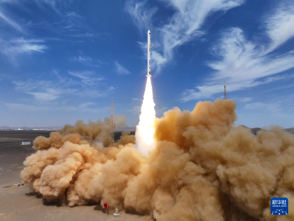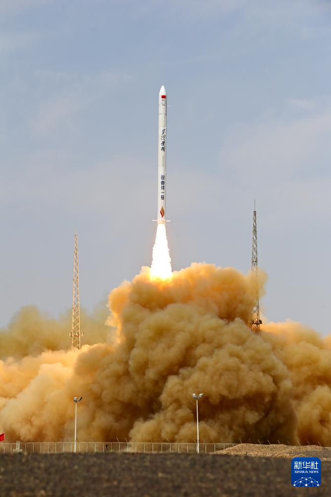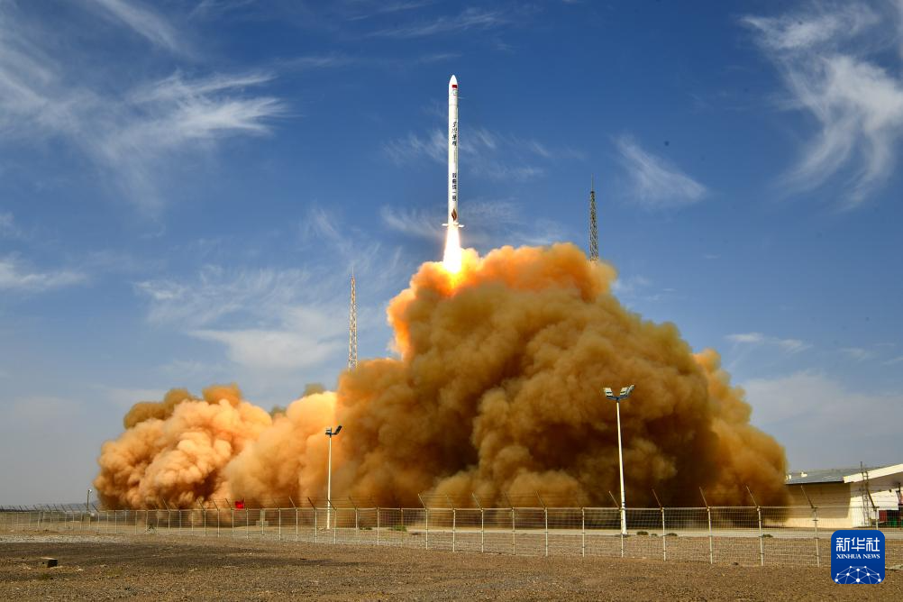 7月29日12时11分,双曲线一号遥十运载火箭在我国酒泉卫星发射中心发射升空,将搭载的恩施硒都山泉号卫星顺利送入预定轨道,飞行试验任务获得圆满成功。新华社发(汪江波 摄)