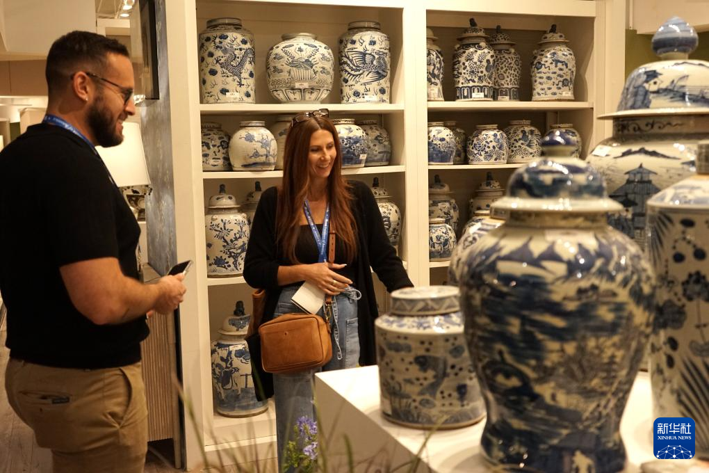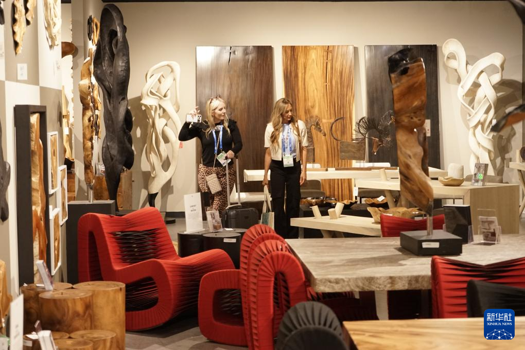7月29日,在2025年美国拉斯维加斯家具及家居装饰展上,观展者在北卡罗来纳州菲利普斯家居品牌的展厅参观。新华社发(曾慧摄)