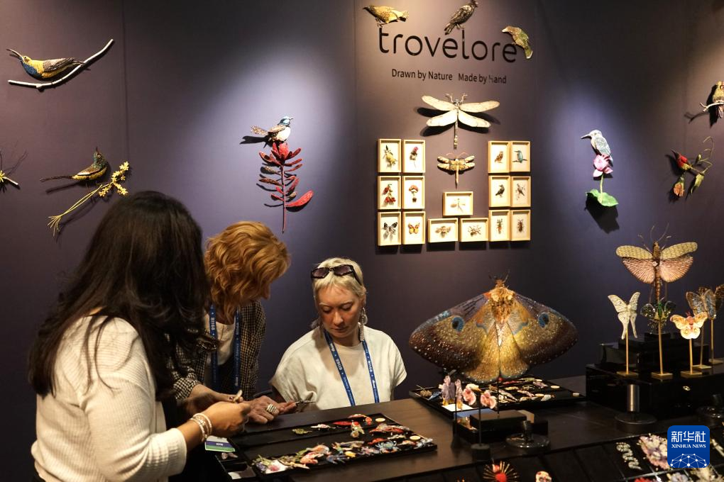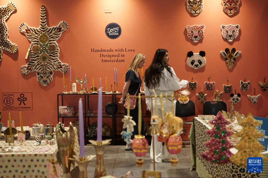 7月29日,在2025年美国拉斯维加斯家具及家居装饰展上,观展者在亚利桑那州手工饰品品牌特罗韦洛的展位参观。新华社发(曾慧摄)