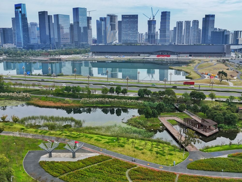 ↑这是成都白鹭湾湿地内的绿道(资料照片)。新华社发(张直 摄)