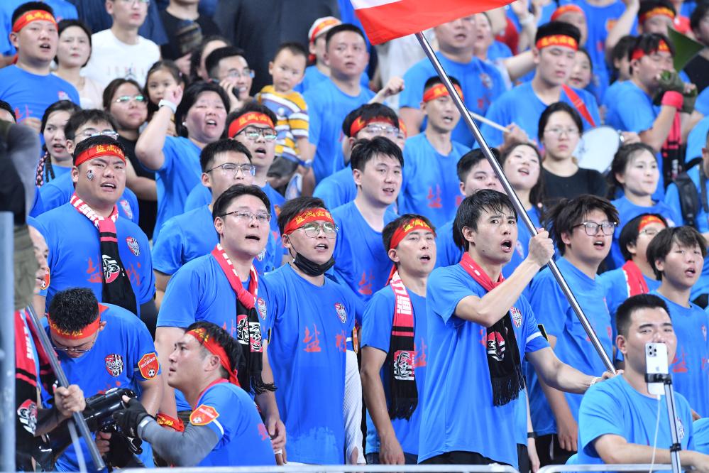 2025年7月20日,常州队球迷在场边加油。 新华社记者 李博 摄