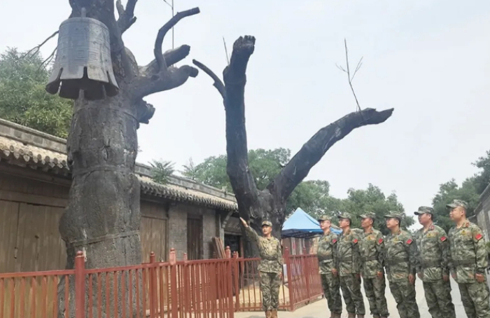 冉庄民兵应急排民兵在老槐树前接受教育。图片来源:解放军报2025年7月2日刊