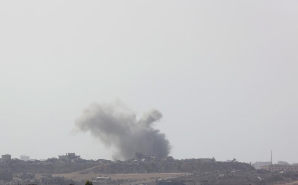 这是7月29日从以色列一侧拍摄的加沙地带遭袭后升起浓烟。新华社发(吉尔·科恩·马根摄)