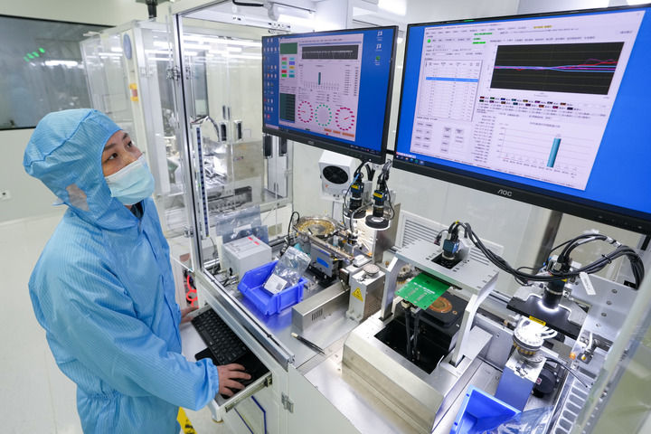 3月31日,工作人员在华景传感科技(无锡)有限公司的生产车间内作业。新华社记者 李博 摄