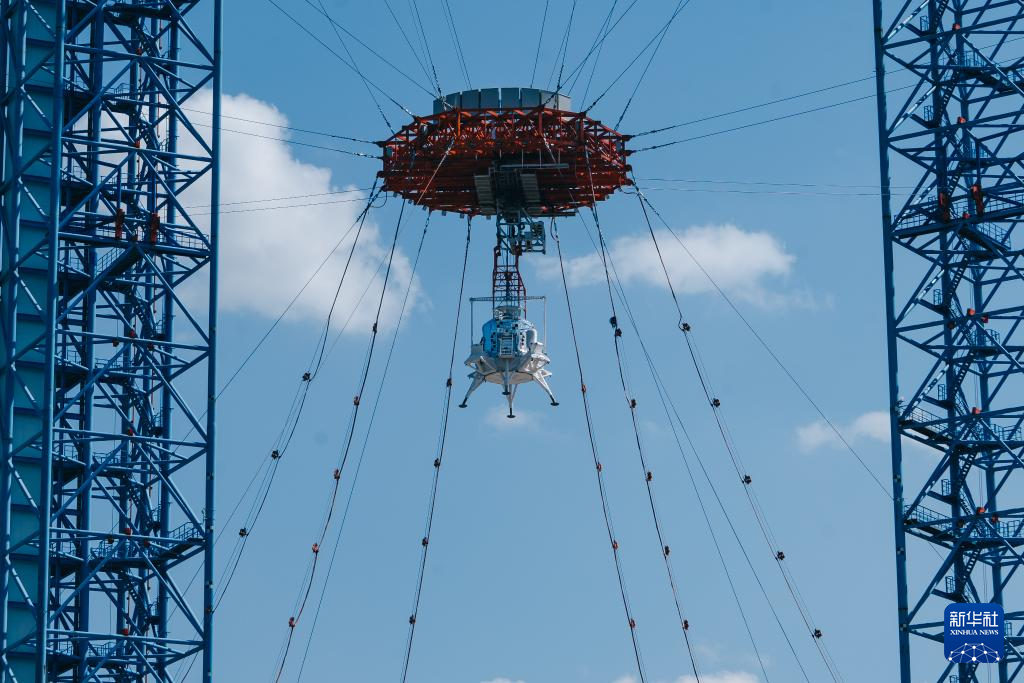 揽月月面着陆器在地外天体着陆试验场进行测试(资料照片)。新华社发(韩庆策 摄)