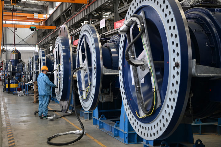 经过轮毂装配、主轴装配、传动链装配、总装、测试等九大工序后,一台6.25兆瓦的大型风力发电机主体部分不到一天便能组装完成,一年可生产约500台——这是位于酒泉经济技术开发区甘肃明阳智慧能源有限公司的风机生产速度。