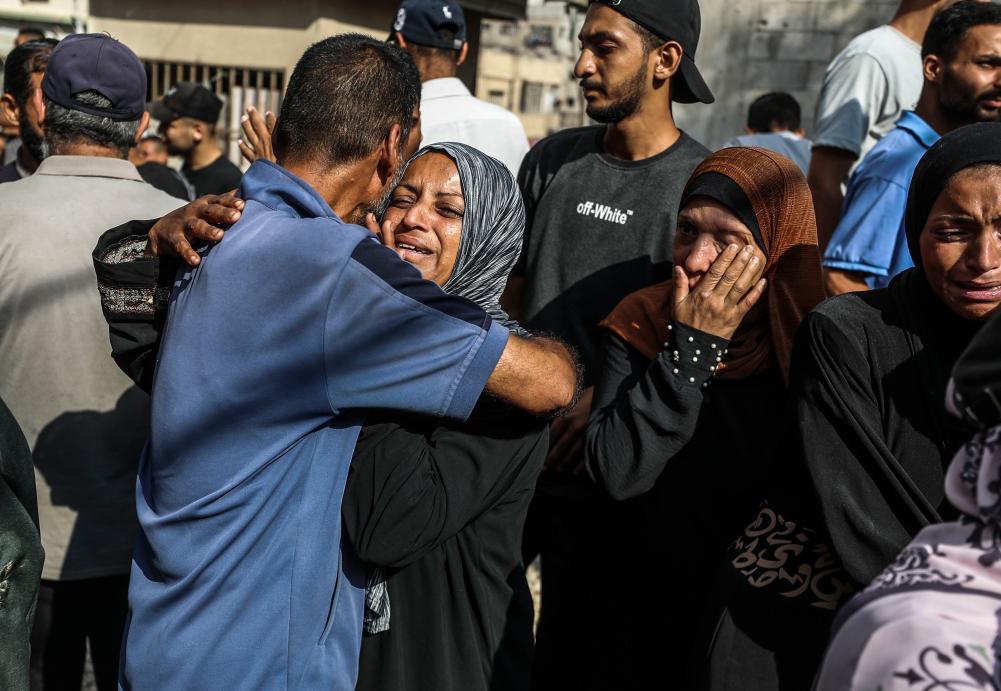 2025年7月21日,巴勒斯坦民众在加沙城的一所医院悼念以军袭击中的遇难者。新华社发(马哈茂德·扎基摄)