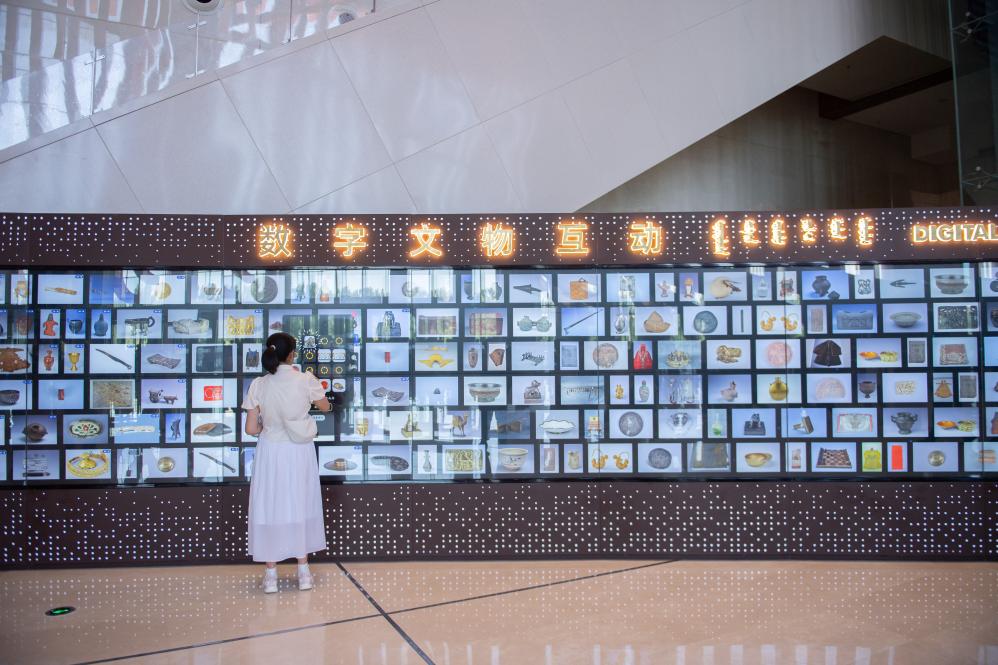 “展厅真不少,一下子不知道从哪里看起。”来自浙江宁波的游客陈颖颖,选择先通过数字文物互动墙了解馆藏文物。数字文物互动墙上密密麻麻排列有400多件文物的照片,陈颖颖轻点屏幕,文物的照片被放大,细如发丝的纹理都能看得一清二楚。