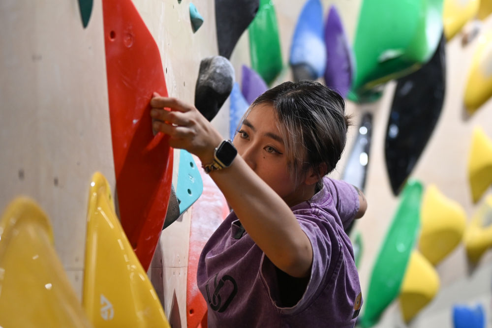 ↑在成都一家攀岩馆内,教练在指导孩子们攀岩技巧(2024年7月15日摄)。