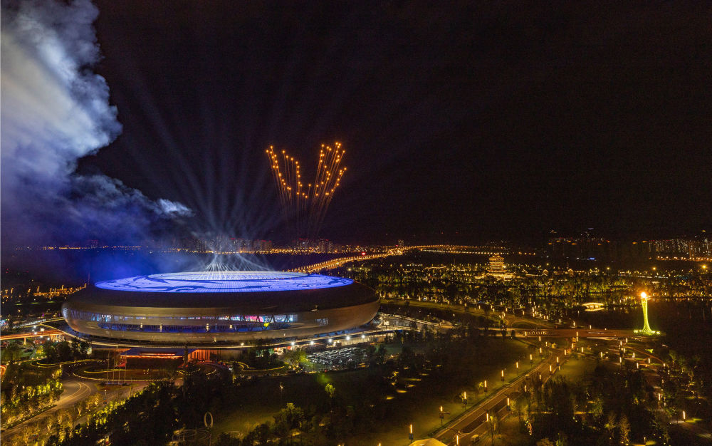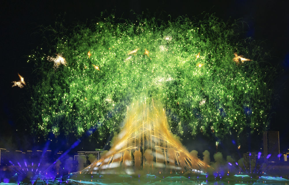 ↑这是成都第31届世界大学生夏季运动会开幕式上的焰火(2023年7月28日摄)。