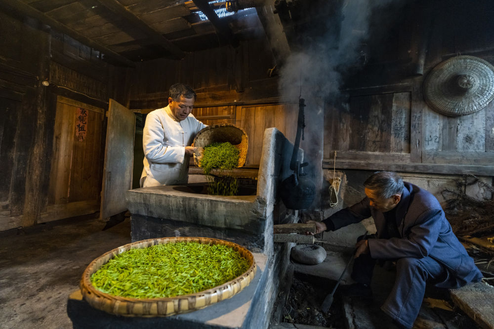 从小他就跟着家里人采茶、制茶