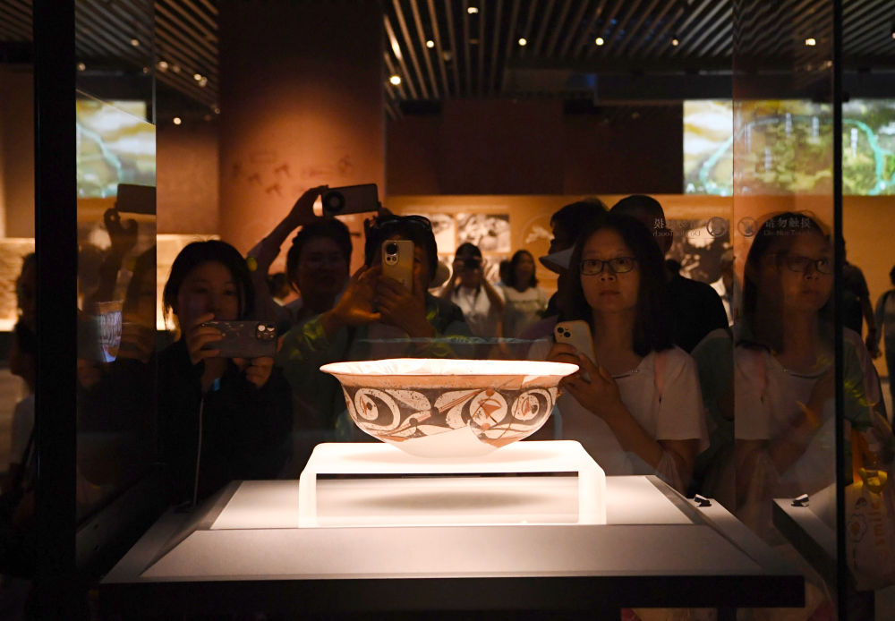 2025年7月24日,上海合作组织媒体智库峰会子活动“文化遗产保护利用交流合作会”的参会嘉宾在郑州大河村遗址博物馆新馆参观。新华社记者 李嘉南 摄