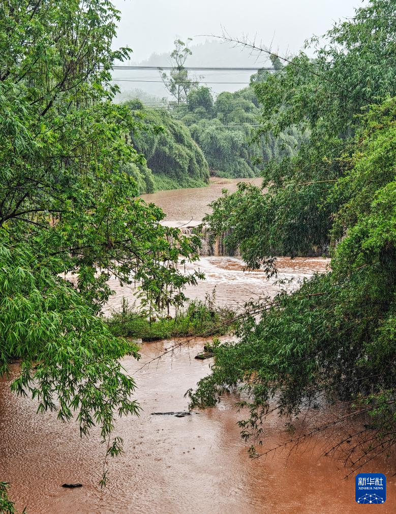 这是8月11日在重庆市合川区官渡镇兴胜村拍摄的大鳌溪涨水景象。新华社发(郑世昌 摄)