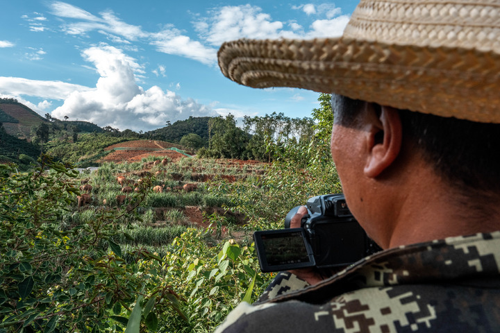 2018年,他成了专职亚洲象监测员,将一辆旧面包车改装成流动工作站,无人机、干粮、卷尺、记录本塞满车厢。追踪象群、发布预警、核查农损,是他每天的任务。野象足迹延伸到哪儿,车轮就驶向哪儿。