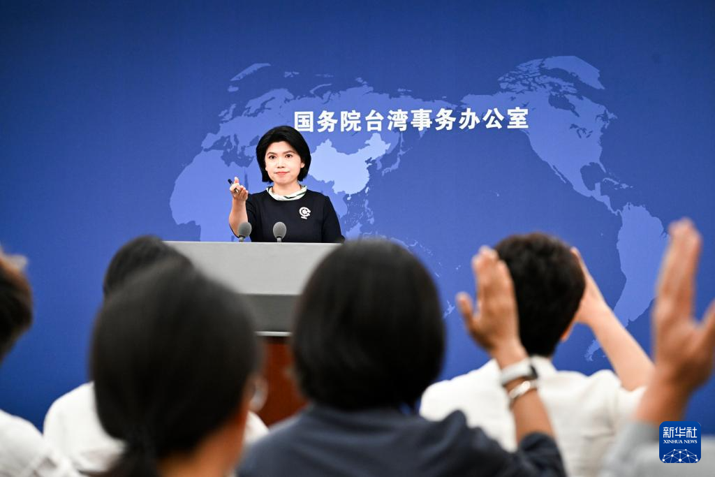 8月13日,国台办发言人朱凤莲邀请记者提问。新华社记者 陈晔华 摄