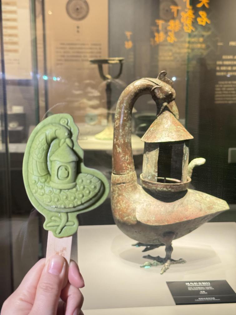 正值暑期旅游旺季,各种造型精美的文创冰淇淋同样深受游客青睐。在邯郸市博物馆,以“战国铜鎏金嵌玉三龙形饰”和“汉代凤鸟形铜灯”为灵感的文创冰淇淋高度还原馆藏文物造型,以吸引游客购买。