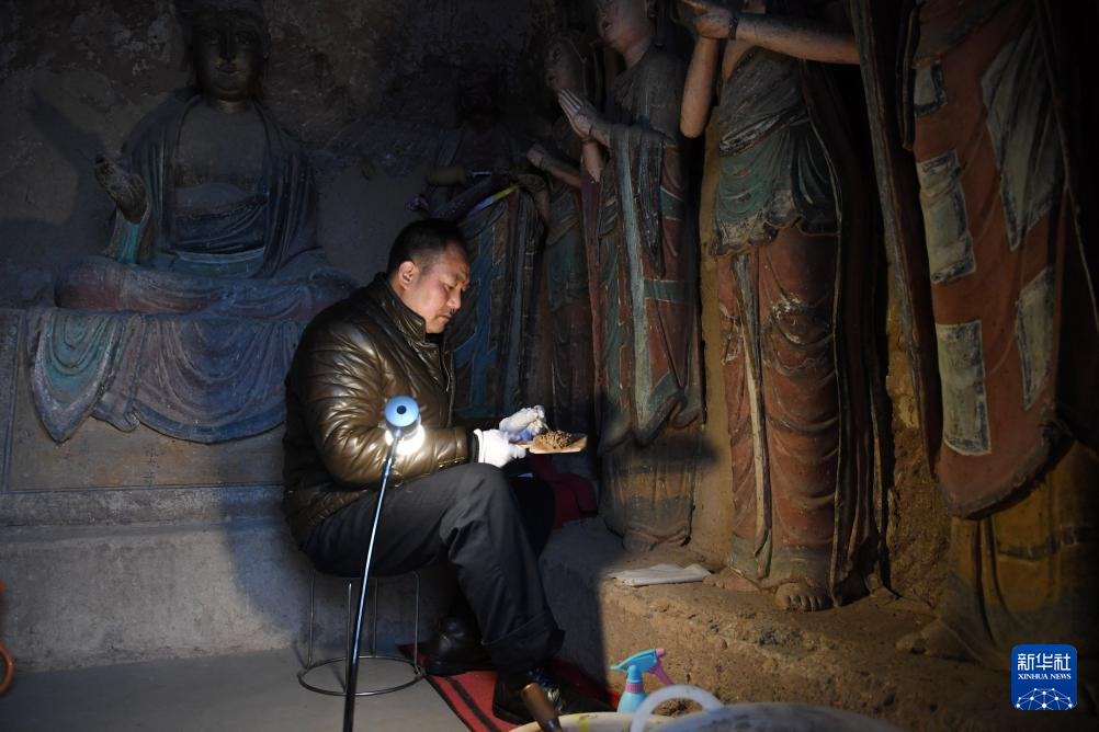 经过多年磨砺,牟常有的文物修复技艺日臻成熟,面对年轻人的请教,他更是倾囊相授。“塑像壁画皆是凝固的历史,守护它们,需要耐心和毅力,相信年轻人能够接好接力棒,让这份珍贵的人类文化遗产永续。”牟常有说。