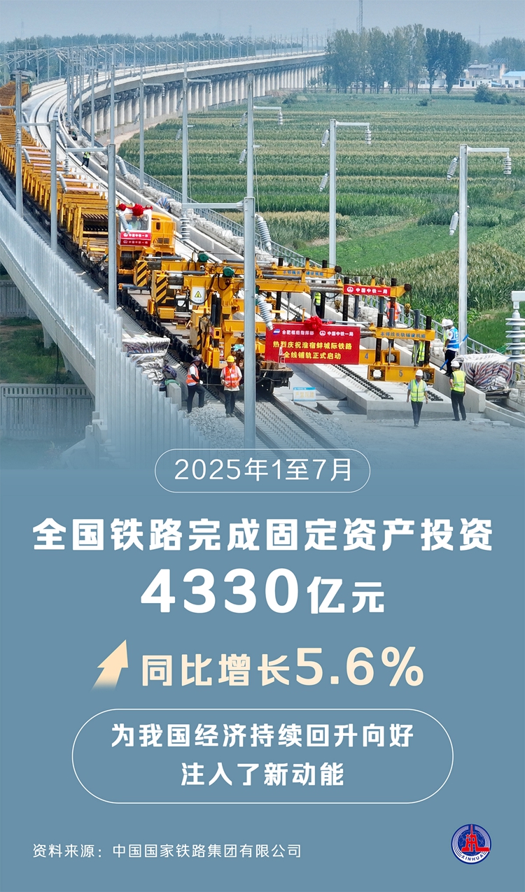 新华社北京8月16日电 题:全国铁路建设再推进 前7月完成固定资产投资4330亿元