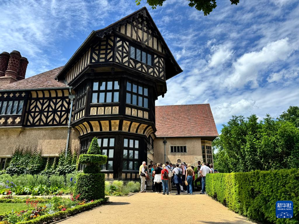 6月7日,在德国勃兰登堡州波茨坦,游客在波茨坦会议旧址采西林霍夫宫外围参观。采西林霍夫宫于2024年底起闭馆维修,暂停对外开放。新华社记者 黄燕 摄
