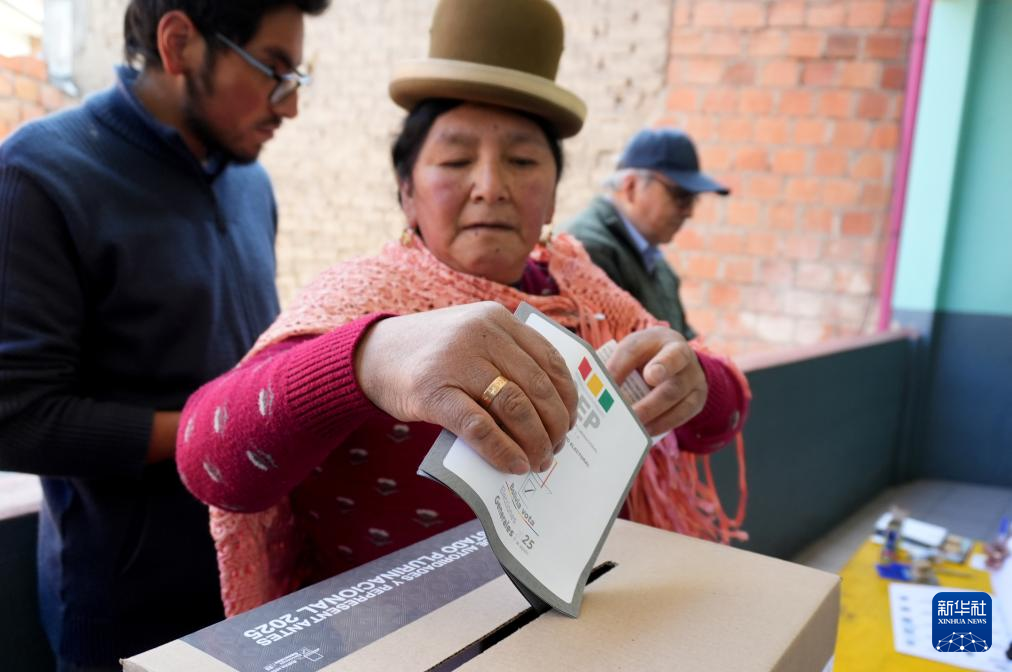 8月17日,在玻利维亚首都拉巴斯的一处投票站,选民参加投票。新华社发(哈维尔·马马尼摄)