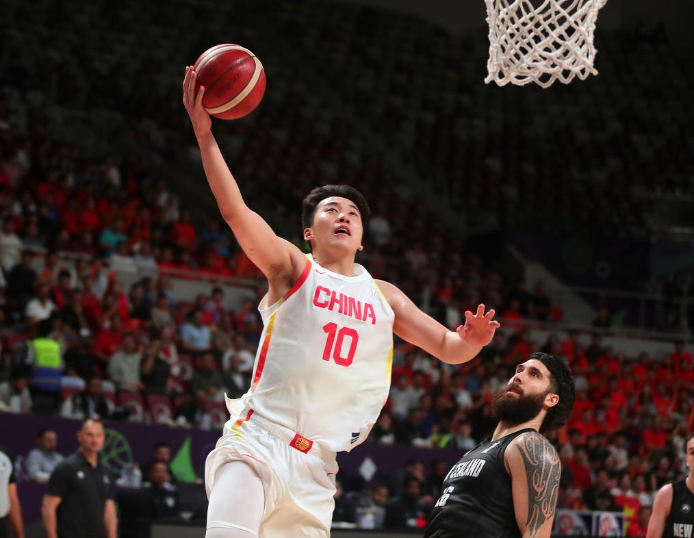 8月16日,中国队球员王俊杰(上)在比赛中上篮。新华社记者 王东震 摄
