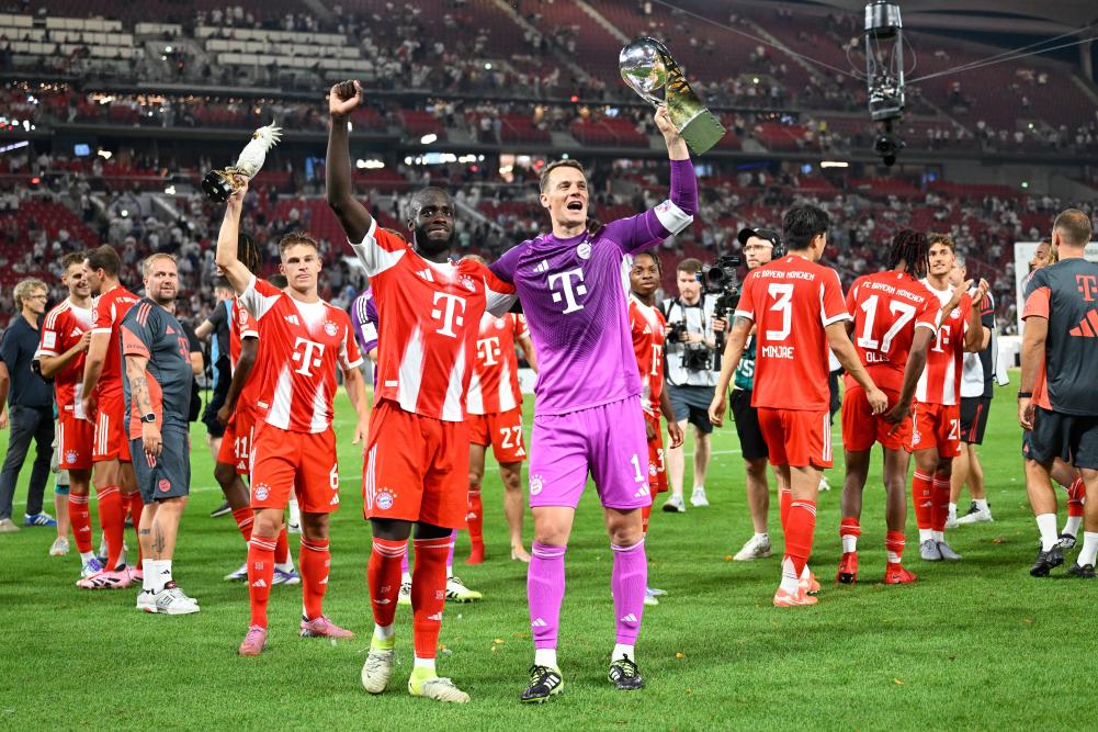 8月16日,在2025年德国超级杯比赛中,拜仁慕尼黑队战胜斯图加特队夺得冠军。新华社发(乌尔里希·胡夫纳格尔摄)