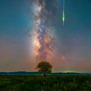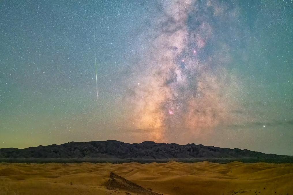 2024年8月12日,在内蒙古阿拉善盟阿拉善左旗拍摄的银河与流星同框。(霍许 摄)